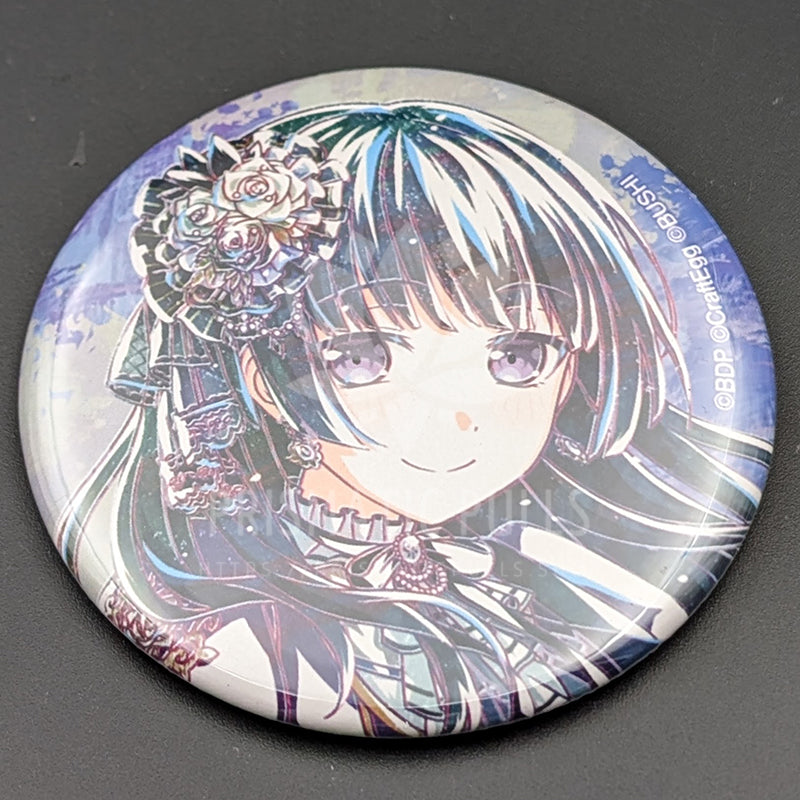 "Ani-Art" collab can badge featuring Rinko Shirokane from BanG Dream! Girls Band Party!