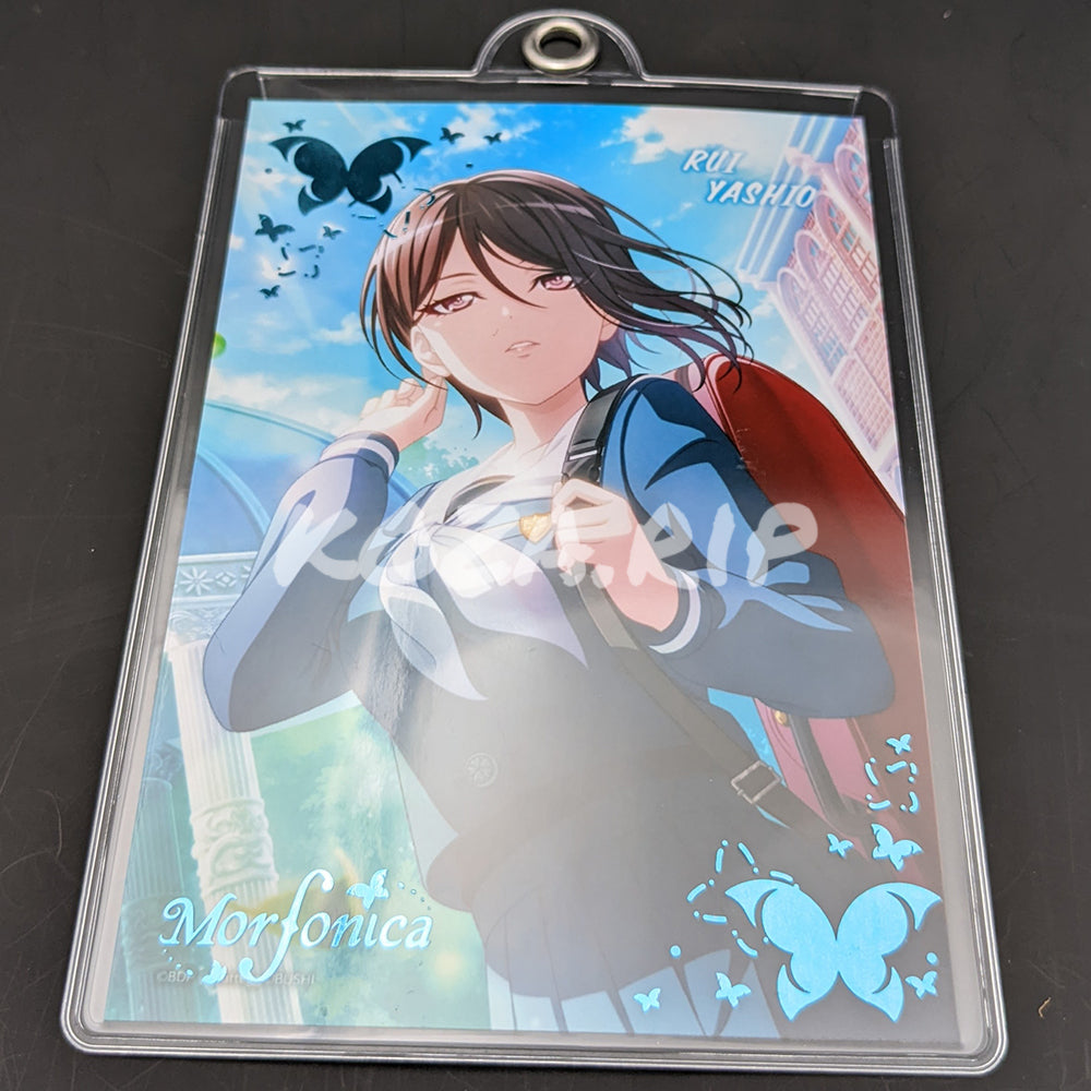 Bromide featuring Rui Yashio from BanG Dream! Girls Band Party! The cover features Morfonica stamping and a keychain hole. Includes ball chain.