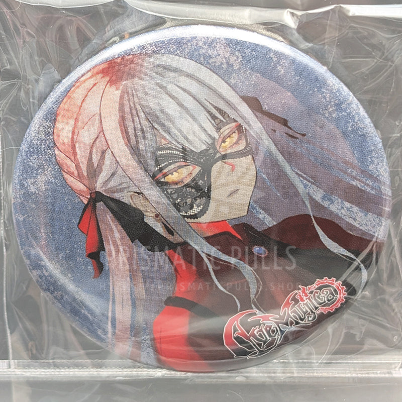 Can badge featuring Oblivionis (Sakiko Togawa) from BanG Dream! Girls Band Party! This can badge was a CD benefit for Ave Mujica's mini album, "ELEMENTS"
