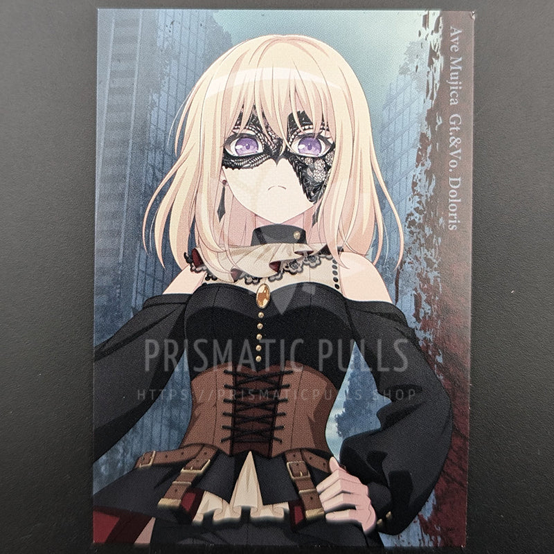 Trading card featuring Doloris (Uika Misumi) from BanG Dream! Girls Band Party!! This trading card was a first press extra included with Ave Mujica's 1st CD Single, "Subarashiki Sekai demo Dokonimonai Basho" ("Utopia").