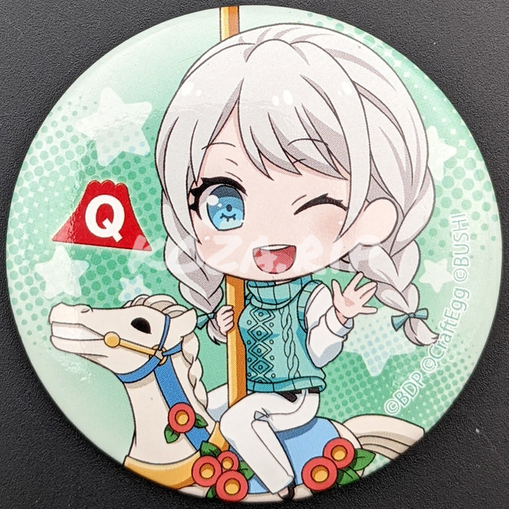Can badge featuring Eve Wakamiya from BanG Dream! Girls Band Party! This can badge was part of the Fuji-Q 2018 collab in Japan.
